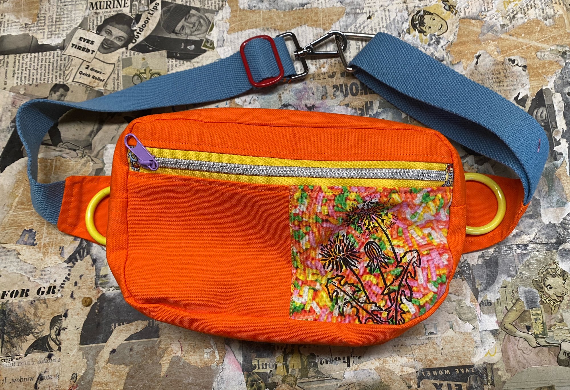 Bright Orange Fanny Pack with Dandelion Sprinkle Patch