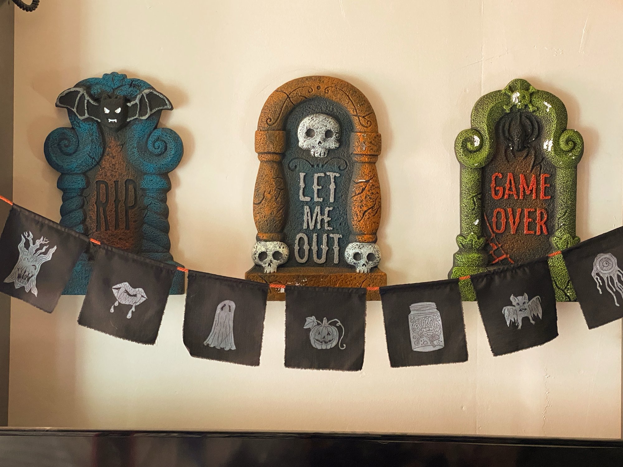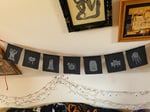 A set of seven cute and creepy designs all lined up to hang wherever you please!