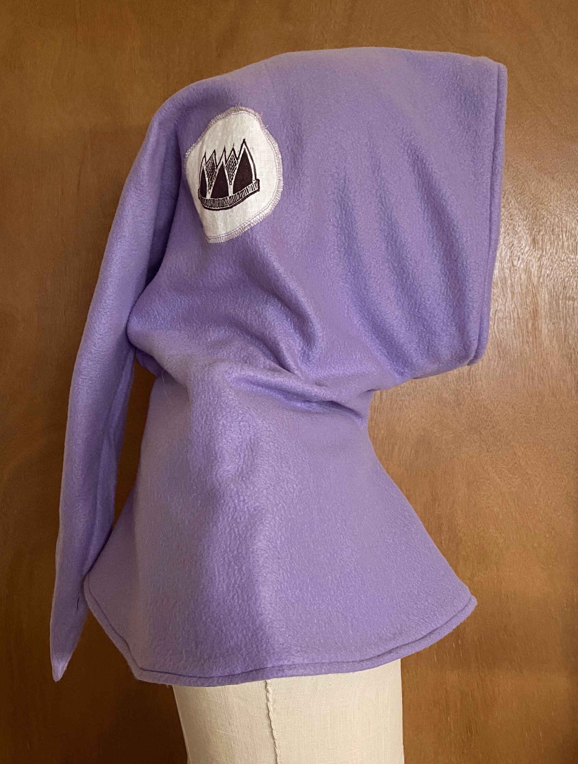 Pullover medieval style hood. Super cozy. Machine washable. Nice big roomy hood can fit most heads.